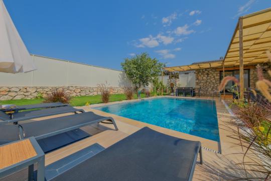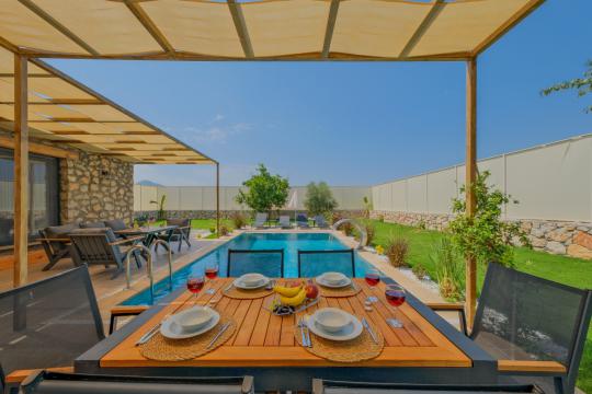 Villa Deva, Fethiye / Merkez'de bulunan lüks bir kiralık tatil villasıdır. Bu eşsiz villa, unutulmaz bir tatil deneyimi sunmak için özenle tasarlanmıştır. Korunaklı bir havuza sahip olması, size ve sevdiklerinize özel bir ortam sağlarken, gizlilik ve rahatlık sunar.
