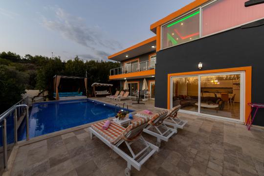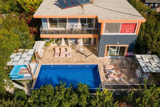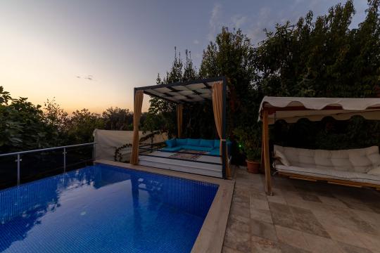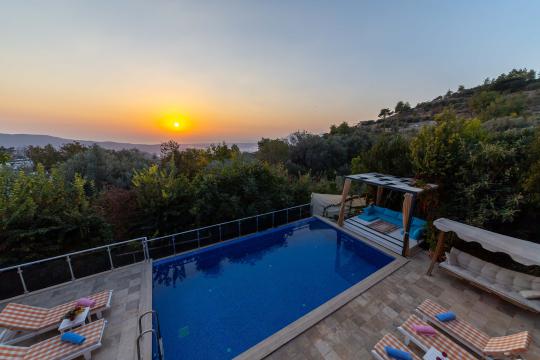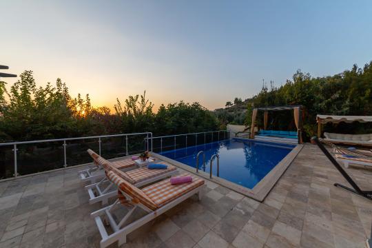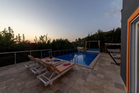 Kalkan İslamlar mevkiinde yer alan Villa Devrim; 3 yatak odalı, 6 kişilik konaklama kapasitesine sahip villamızdır. Güneşlenme terası ve özel yüzme havuzu dışarıdan görünmediği için mutassıp aileler ve balayı çifleri için oldukça uygun bir seçenektir. Villamızın çevresi doğal olarak süslenmiş olup siz misafirlerimize yılın yorgunluğunu atma imkanı sunar.