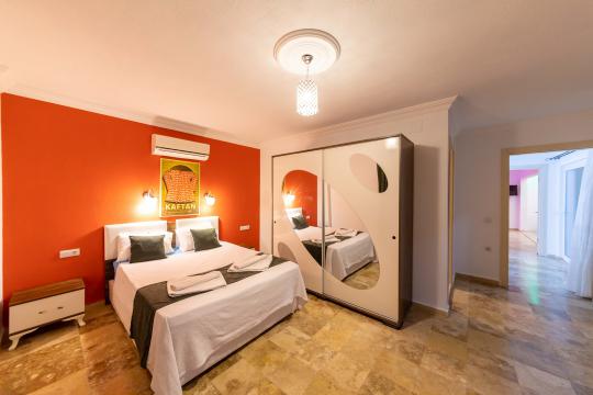 3. Yatak Odası 2 tek kişilik yatak + elbise dolabı + komodin +klima + ortak banyo + makyaj masası