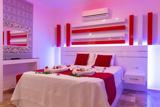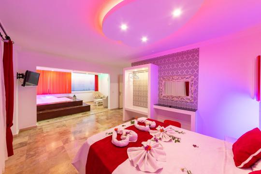 1. Yatak Odası 1 çift kişilik yatak + elbise dolabı + komodin +klima + jakuzi + ebeveyn banyo + makyaj masası