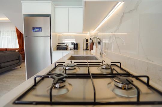 Mutfak: Amerikan Mutfak, buzdolabı, bulaşık makinesi, çamaşır makinesi, fırın, 4'lü ocak, mutfak araç gereçleri (tabak&bardaklar, tencere&tavalar vb.), kettle(çaycı) ve 6 kişilik yemek takımı bulunmaktadır.