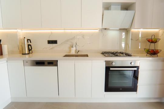 Mutfak: Amerikan Mutfak, buzdolabı, bulaşık makinesi, çamaşır makinesi, fırın, 4'lü ocak, mutfak araç gereçleri (tabak&bardaklar, tencere&tavalar vb.), kettle(çaycı) ve 6 kişilik yemek takımı bulunmaktadır.