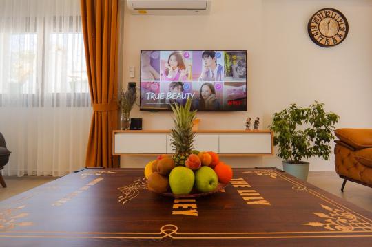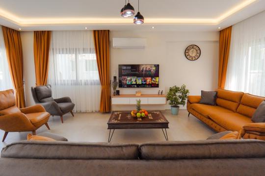 Salon:Oturma Grubu, klima, LCD Tv, 6 kişilik yemek masası, ütü, WC, ütü masası, uydu alıcısı, internet ve terasa çıkış bulunmaktadır.