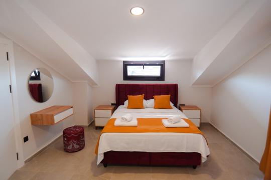 2. Yatak Odası: 1 adet çift kişilik yatak, makyaj masası, elbise dolabı, komidin, klima, banyo/WC