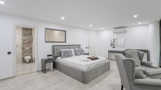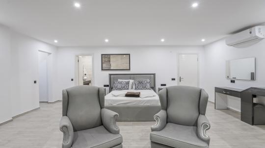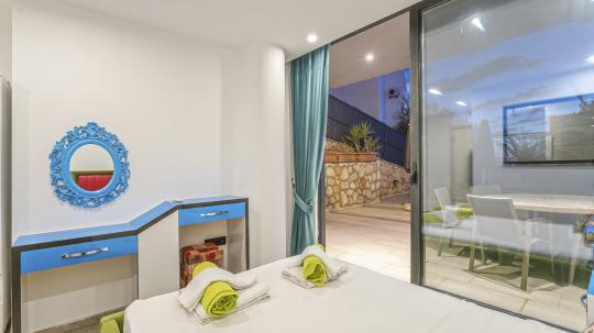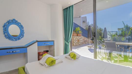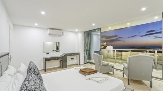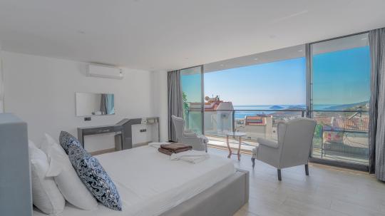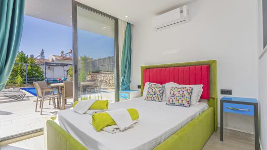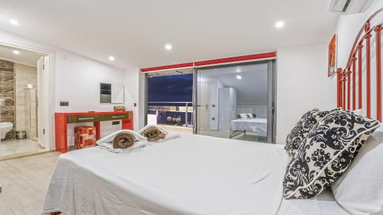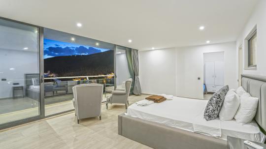 Villanın 4 geniş ve konforlu yatak odası bulunmaktadır. Özel olarak tasarlanmış teras katındaki yatak odasında, muhteşem manzaranın keyfini çıkarabileceğiniz bir jakuzi yer almaktadır. Burada güneşin batışını izlerken hem rahatlayabilir hem de eşsiz bir romantik atmosferin tadını çıkarabilirsiniz.
