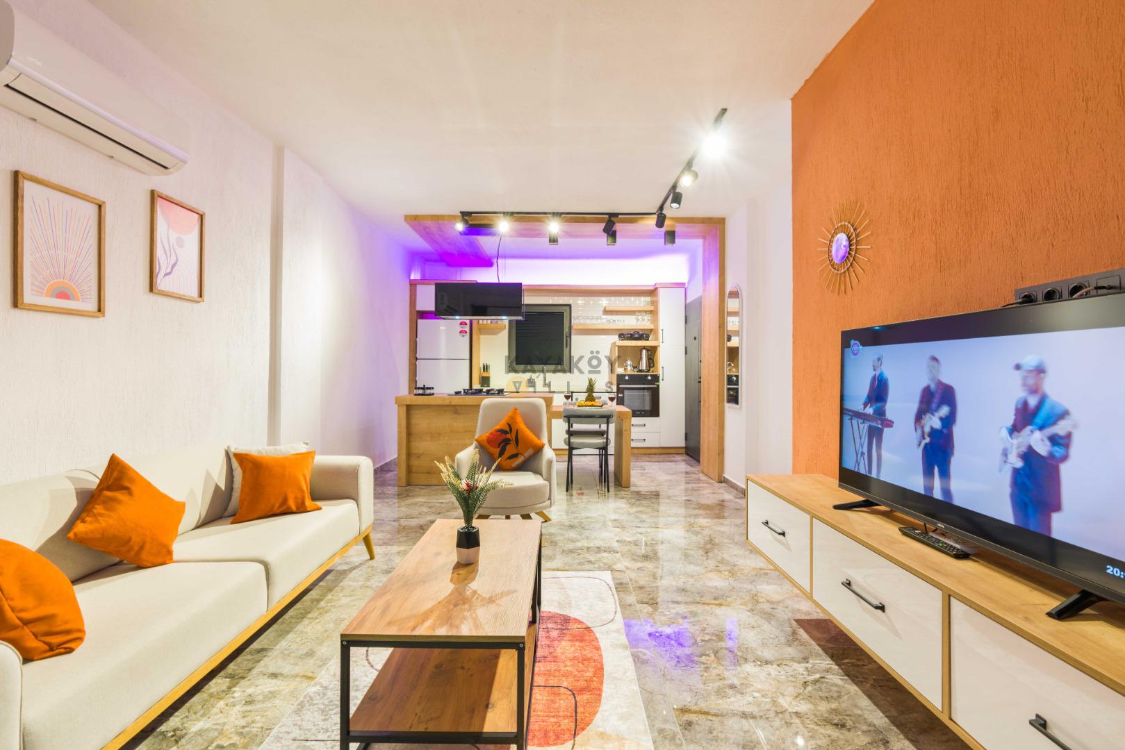 Ferah Yaşam Alanı: Klimalı salon, TV ve rahat oturma bölümü.
