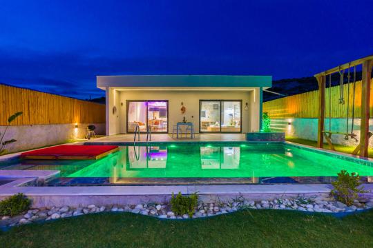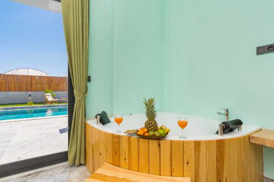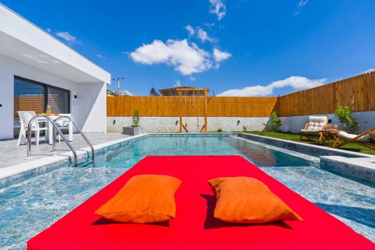 Korunaklı yüzme havuzu çevresi ve jakuzisiyle göze çarpan Villa Domino, dışarıdan izole bir tatil deneyimi sağlar. Havuz başında şezlong, barbekü ve bahçe oturma grubu gibi dış mekân alanlarıyla tatilinizi doğanın içinde keyifle geçirebilirsiniz.