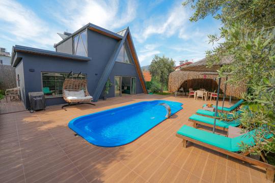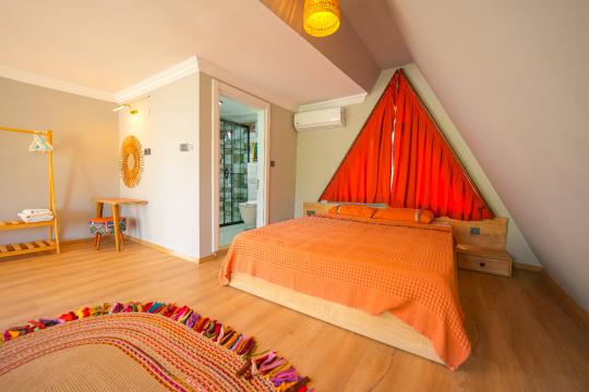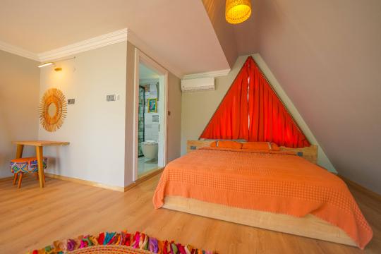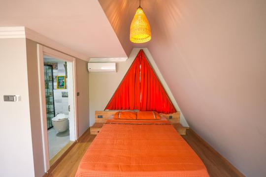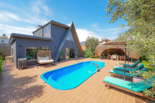 Fethiye'deki bu benzersiz üçgen ev, modern mimarisi ve şehir yaşamından uzak, sakin bir konumuyla öne çıkıyor. Deniz manzarasına sahip olmamasına rağmen, doğal güzelliklere komşu bu ev, pratik düzenlemeleri ve huzurlu atmosferiyle özellikle sakin bir yaşam arayışındakilere hitap ediyor. Geniş pencereleri, içeri doğan güneşle aydınlanan ferah mekanlarıyla konforlu bir yaşam sunuyor.
