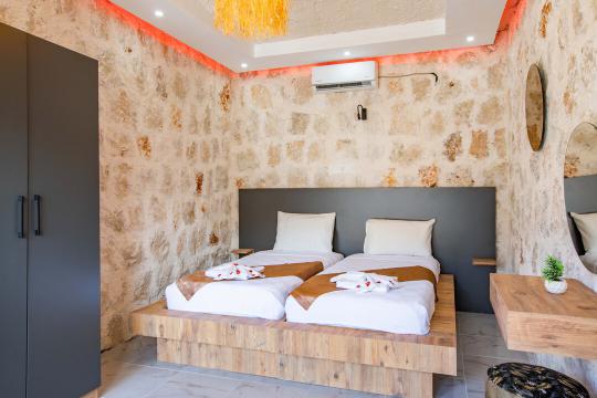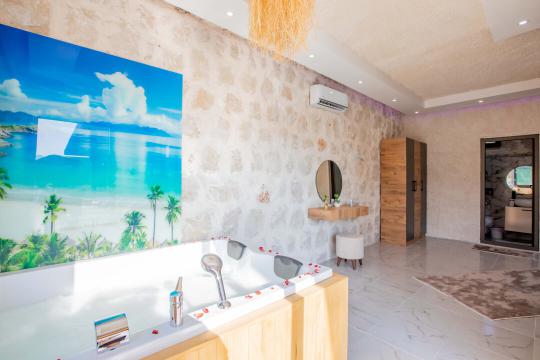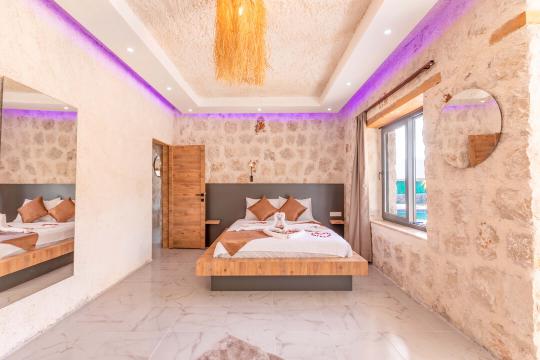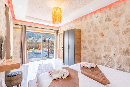 Villa East Duo Kalkan Sarıbelen bölgesinde yer alan 4 kişi konaklama kapasitesine sahip olan tatil villalarımızdan biridir. Hoş dizaynı ile dikkat çeken viillamızın yatak odasında jakuzisi yer almaktadır. Aynı zamanda villamızda küçük bir yeşil alan ve cocuk oyun alanı da sizlerin rahatı için düşünülmüştür. Balayı çiftleri ve çekirdek aileler için oldukça uygun bir seçenektir.