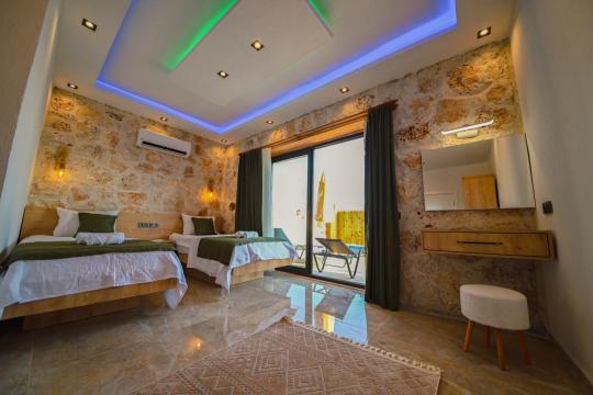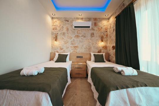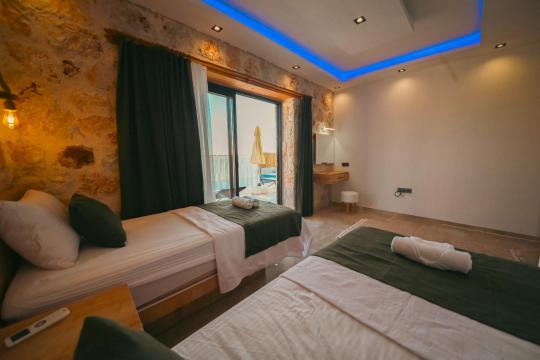 Not: Villamızda bulunan tek kişilik yataklar birleştirilerek çift kişilik yatak olabilmektedir.