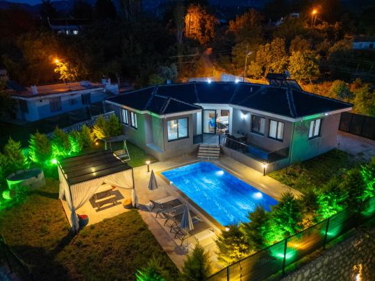 Kendisine özel bahçesi ve havuzu bulunan bu villa bahçede sevdiğinizle barbekü yapıp, herşeyi mevcut olan mutfağınızda hoş sunumlar yapmanıza olanak sağlıyor. Havuzun etrafına konumlandırılmış şezlonglar ile güneşin tadını çıkarırken bir yandan serinleyebilirsiniz.