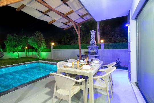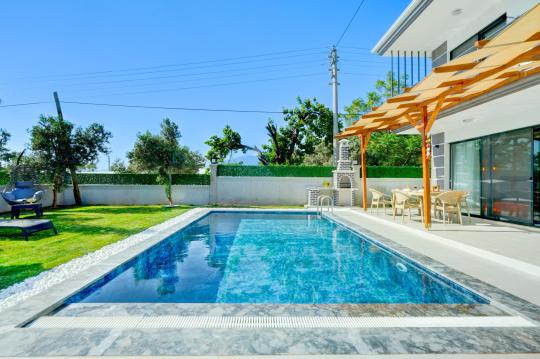 Bu şık villada, 2 geniş yatak odası ve 3 modern banyo bulunmaktadır. Her detayı özenle düşünülmüş olan iç mekanlar, rahatınız ve keyfiniz için tasarlanmıştır. Ferah ve aydınlık odalarda dinlenirken, özel havuzunuzun keyfini çıkarırken kendinizi şımartacaksınız.