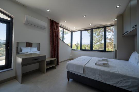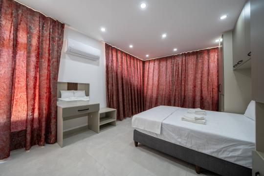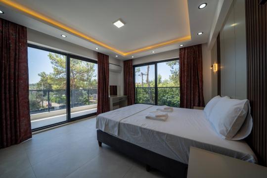 1.Yatak odası: Çift kişilik yatak, klima, ebeveyn banyo, komodin, park yatak, elbise dolabı ve balkon bulunmaktadır.