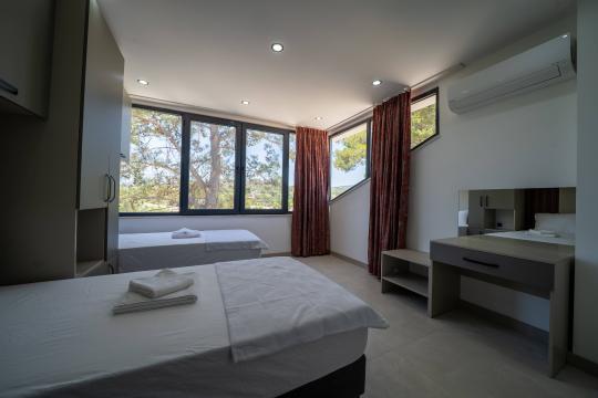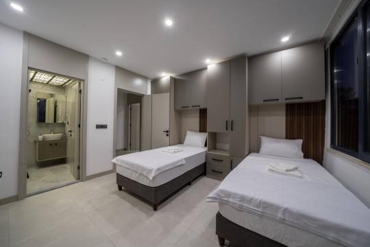 3.Yatak odası: Tek kişilik iki tane yatak, komodin, ebeveyn banyo, klima, elbise dolabı bulunmaktadır.