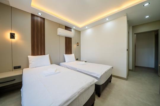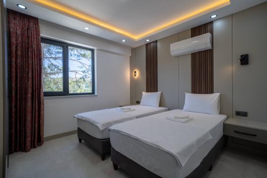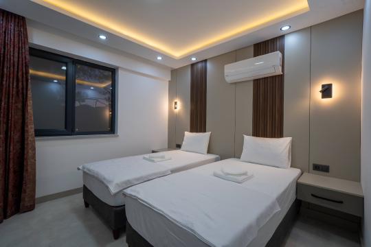 4.Yatak odası: Tek kişilik iki tane yatak, komodin, klima, elbise dolabı bulunmaktadır.