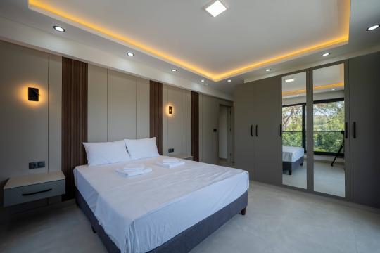 1.Yatak odası: Çift kişilik yatak, klima, ebeveyn banyo, komodin, park yatak, elbise dolabı ve balkon bulunmaktadır.