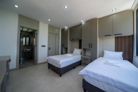 3.Yatak odası: Tek kişilik iki tane yatak, komodin, ebeveyn banyo, klima, elbise dolabı bulunmaktadır.