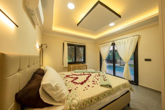 Fethiye Karagedik mahallesinde bulunan bu zarif villamız, 2 yatak odası ve 4 kişilik konaklama kapasitesiyle çekirdek aileler ve balayı çiftleri için mükemmel bir tatil seçeneği sunuyor. Özel havuzu ve geniş bahçesiyle misafirlerine huzurlu ve konforlu bir ortam sağlayan villa, romantik ve dinlendirici bir tatil arayanlar için ideal. Şehir hayatının gürültüsünden uzakta, sevdiklerinizle birlikte keyifli anılar biriktirmek için bu özel villada konaklayabilirsiniz.