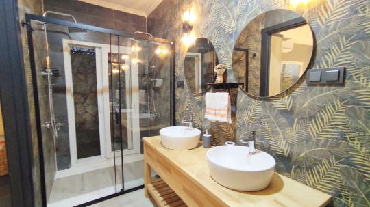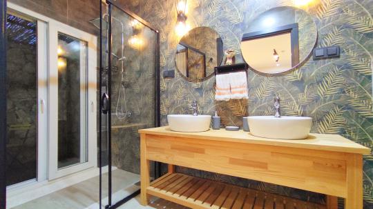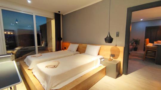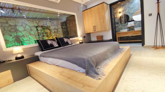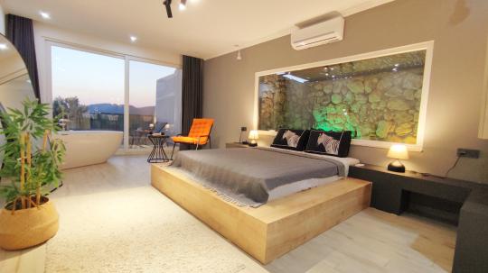 Ana yatak odası çift kişilik lavabo ve çift kişilik sevgili duşundan dışarıya çıkılabilir şekilde özel küçük bir tropikal bahçeye sahiptir. Yatak başlığının arkasında da kesintisiz bir camdan bu tropikal bahçe izlenebilir. Akşam ışığı şekilde çok zevkli bir ortam yaratmaktadır.