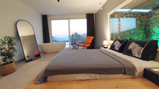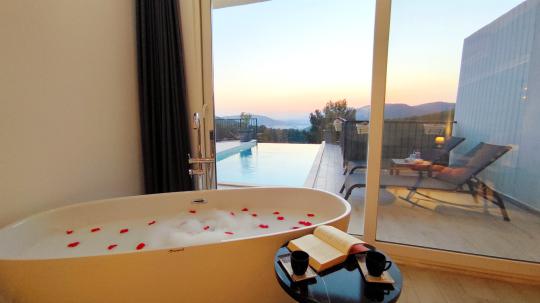Ayrıca serbest bağımsız jakuzisi ve jakuzi'den yine deniz manzarası izlenebilir şekilde modern bir yapıya sahiptir.