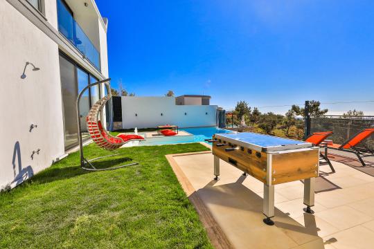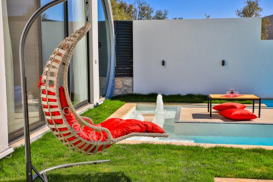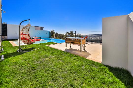Bahçe : Bahçe içerisinde özel yüzme havuzu, şezlonglar , yemek masası ve sandalyeler, langırt, damla salıncak ve taş barbekü yer almaktadır.