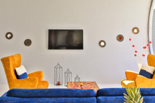 Salon : Salon içerisinde modern oturma grubu, uydu alıcısı, LCD TV, orta sehpa, klima ve havuz terasına çıkış bulunmaktadır.