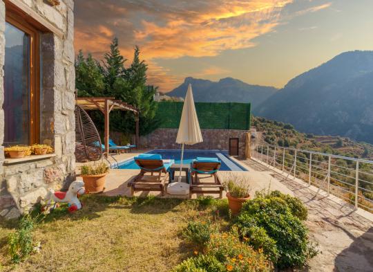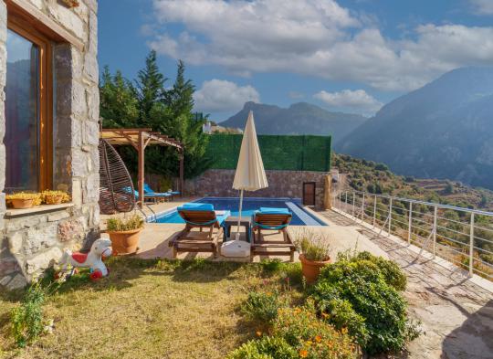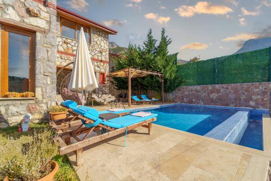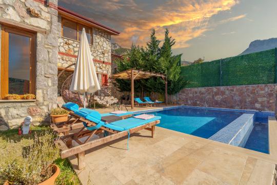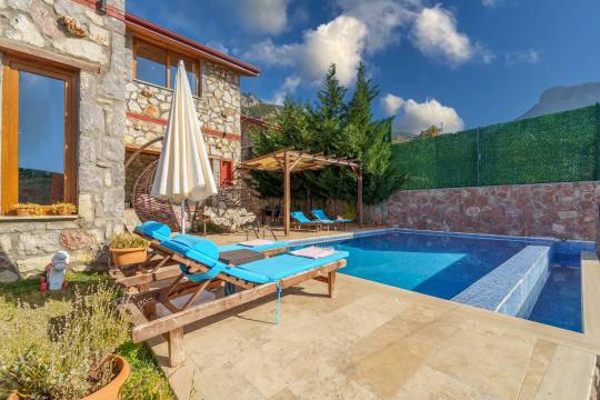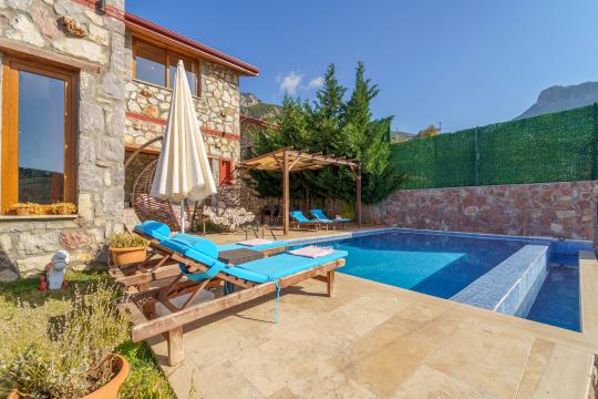 Villa Esila 2, Fethiye/ Faralya- Kirme mevkiinde bulunan havuzu oldukça korunaklı villamızdır. Konumundan dolayı doğa içerisinde yer alan ve deniz manzarasına sahip olan villamız yeşil ve maviye doyabileceğiniz huzurlu ve çok özel bir tatil imkanı sağlamaktadır. Villamızın içerisinde yer alan sauna imkanı gelecek misafirlerimize muhteşem bir tatil fırsatı sağlamaktadır.