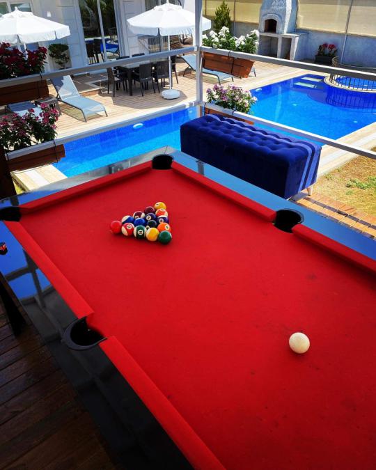 Özel bahçe : Özel ve geniş bahçesinde özel havuzu bulunmaktadır. Bahçede masa , sandalye ,şezlong, şemsiye ,köşk, bilardo masası, langırt ve çocuk oyun alanı, ayrıca bahçede yer alan taş barbekü sayesinde dilediğiniz gibi mangal keyfi yapabilirsiniz.