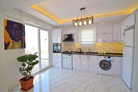 Mutfak : Amerikan mutfak, buzdolabı, bulaşık makinası, çamaşır makinası, ankastre fırın, ankastre 4’lü ocak, elektrikli su ısıtıcısı (ketıl), yemek masası, yemek takımı, tava, tencereler, çatal, bıçak vs. bulunmaktadır.