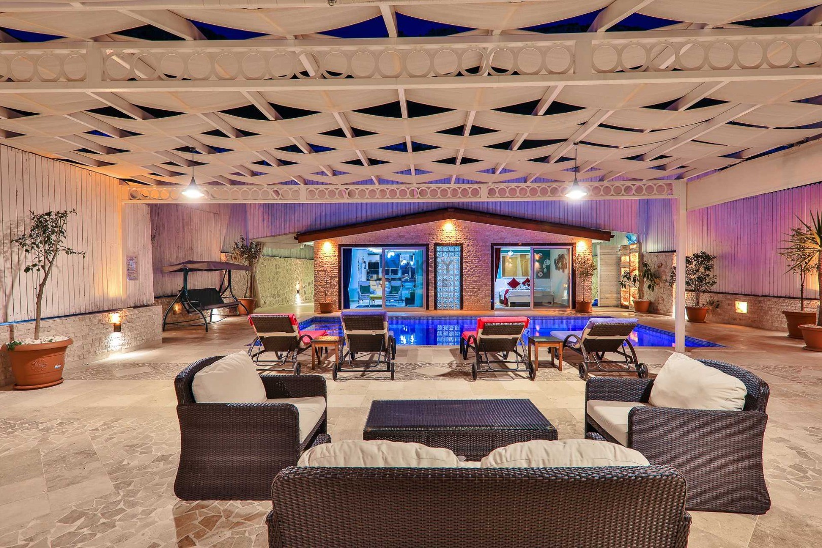 Not: Villamızda kapalı havuz ısıtması opsiyonel olarak sunulmakta olup; gecelik 2.000 TL karşılığında aktif edilmektedir. Havuz ısıtma isteyen misafirlerimizin rezervasyon aşamasında ya da giriş tarihinden 3 gün önce havuz ısıtma taleplerini iletmesi gerekmektedir.