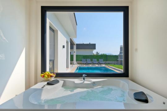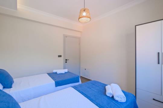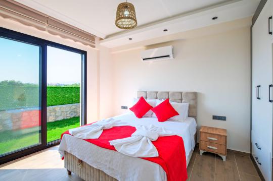 Villamızda 2 yatak odası ve 2 banyo mevcuttur. Birinci yatak odası içerisinde bir adet çift kişilik yatak, WC-banyo, jakuzi ve klima; ikinci yatak odası içerisinde ise iki adet tek kişilik yatak ve klima bulunmaktadır. Ortak alanda salon-mutfak, klima ve TV yer almaktadır.