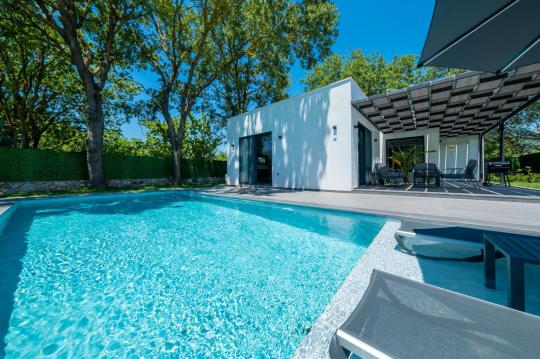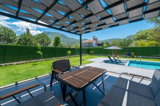 Havuz ve bahçe terası dışarıdan görünmeyecek şekilde dizayn edilen villamız, muhafazakar tatil tercih eden aileler ve balayı çiftleri için ideal bir seçenektir. Rahatınız ve gizliliğiniz ön planda tutularak tasarlanan villa, sakin bir ortamda rahat bir tatil geçirmenizi sağlar.