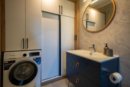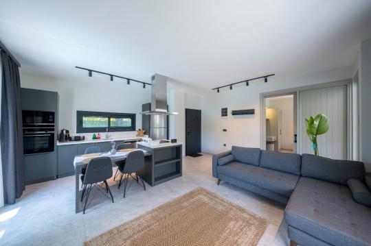 Mutfak: Açık mutfak olarak tasarlanmıştır. Buzdolabı, bulaşık makinesi, 4’lü ocak, ankastre fırın, filtre kahve makinesi, yemek takımı ve tatiliniz süresince ihtiyacınız olabilecek her türlü mutfak malzemesi bulunmaktadır.