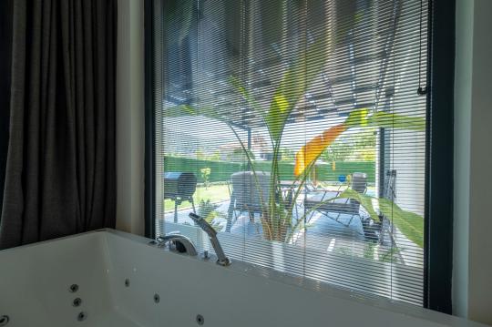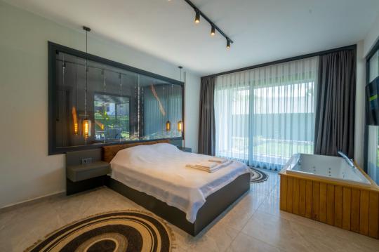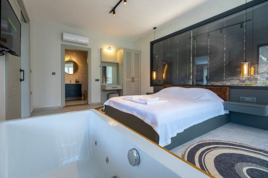 Yatak odasında yer alan jakuzi, romantik anlarınızı özel kılmak için tasarlanmıştır. Jakuzinin sıcak sularına kendinizi bırakarak günün yorgunluğunu atabilir ve huzur dolu anların tadını çıkarabilirsiniz.