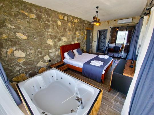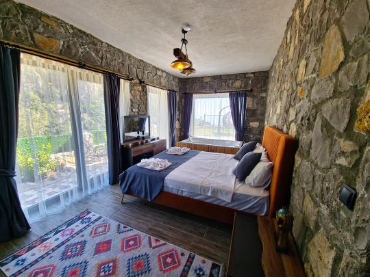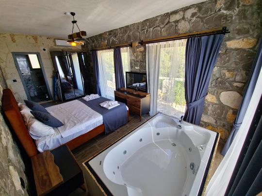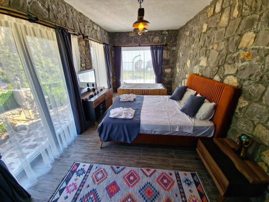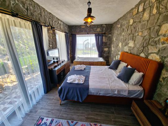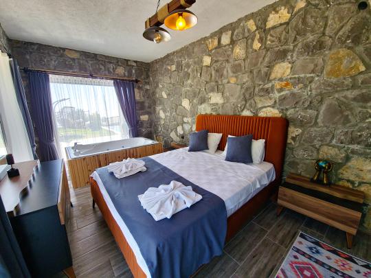 2. Yatak Odası : 1 Çift Kişilik Yatak + klima + Komidin + Elbise Dolabı + Ebeveyn Banyo + Jakuzi