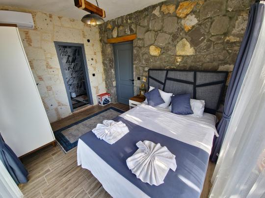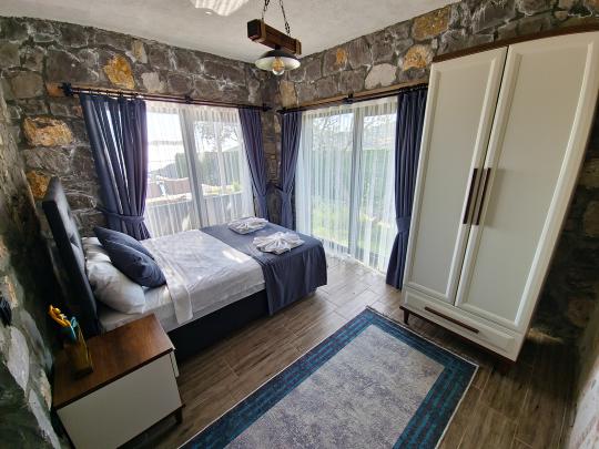 1. Yatak Odası :1 Çift Kişilik Yatak + Klima + Komidin + Elbise Dolabı + Ebeveyn Banyo