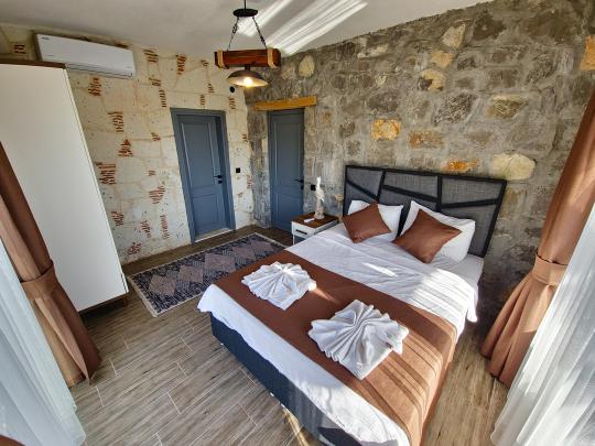 1. Yatak Odası :1 Çift Kişilik Yatak + Klima + Komidin + Elbise Dolabı + Ebeveyn Banyo