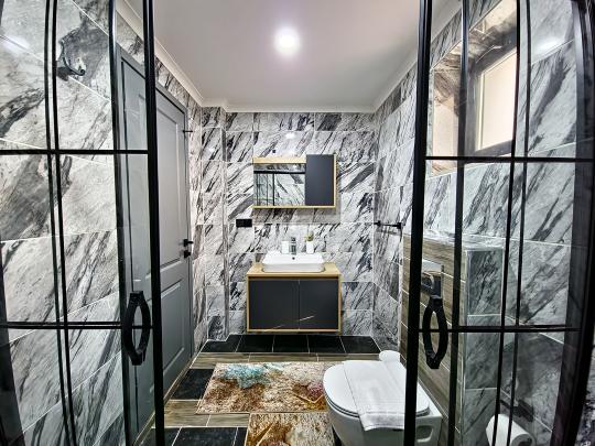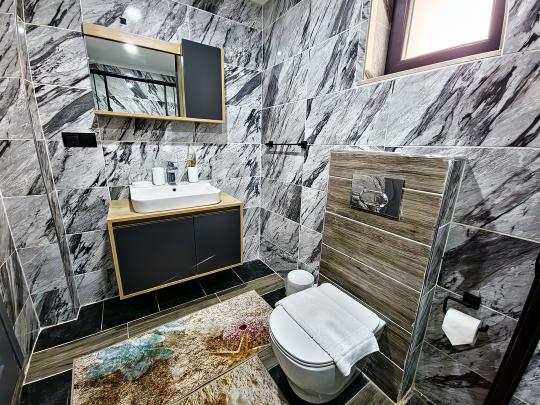 1. Yatak Odası :1 Çift Kişilik Yatak + Klima + Komidin + Elbise Dolabı + Ebeveyn Banyo