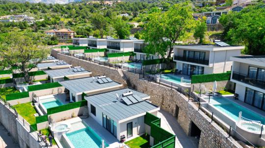 Yapımı 2023 yılında tamamlanmış villa yan yana 12 adet 1+1 ve 2+1 olarak aynı özelliklere sahip villadan oluşmaktadır. Birlikte tatil yapmak isteyen balayı çiftleri ve çekirdek aileler için oldukça uygundur. Villamız kaliteli ve modern eşyalarla dizayn edilmiş olup kendinizi evinizde hissedebileceğiz bütün araç gereçlerle donatılmıştır.