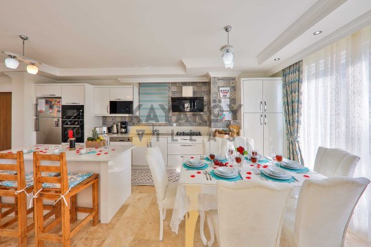 İç mekânda modern Amerikan mutfak, ferah salon alanı ve tamamı suit olarak tasarlanmış yatak odaları bulunmaktadır. Jakuzili ebeveyn odası tatilinize ekstra konfor katarken, tam donanımlı mutfak ve modern yaşam alanları ev rahatlığında bir konaklama sunar. Villa Flora 1, Kalkan kiralık villa seçenekleri arasında korunaklı yapısı ve doğa içindeki konumuyla öne çıkan alternatiflerden biridir.