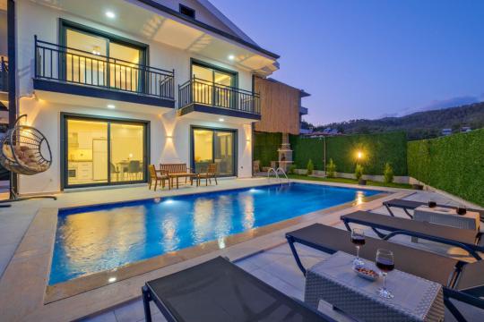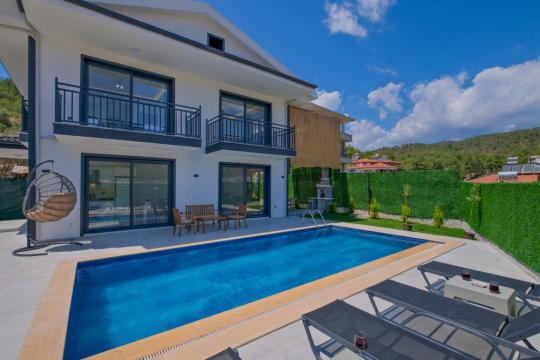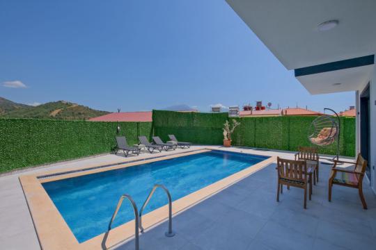 Fethiye Karagedik mevkiide bulunan villa, 3 yatak odasıyla 6 kişilik konaklama kapasitesi sunmaktadır. Çekirdek aileler ve kalabalık arkadaş grupları tarafından tercih edilen villa, havuz alanı korunaklı bir yapıya sahiptir.