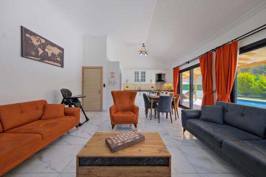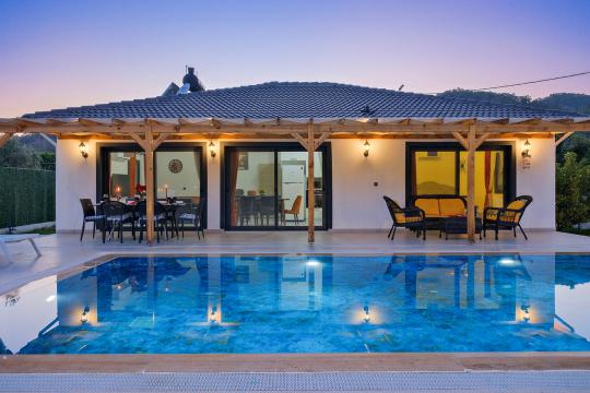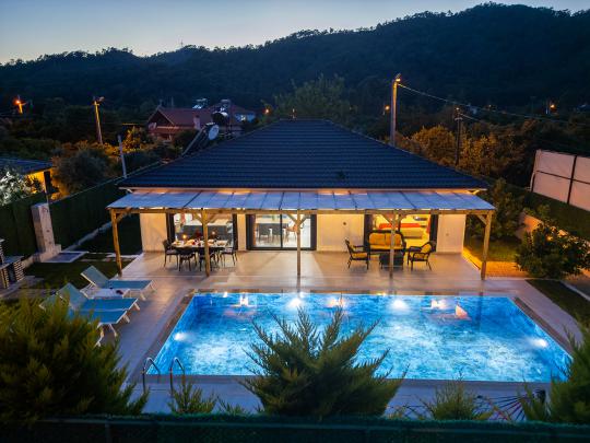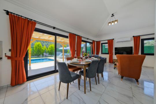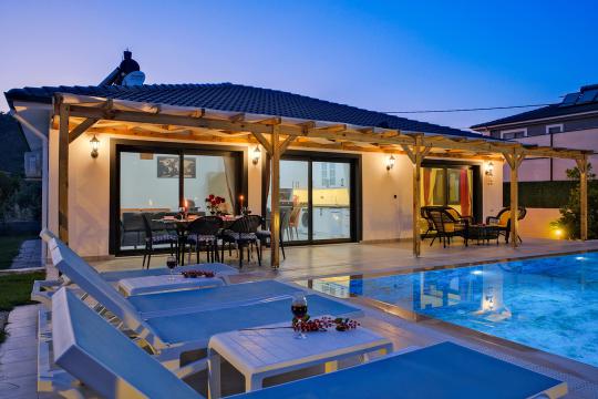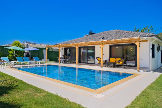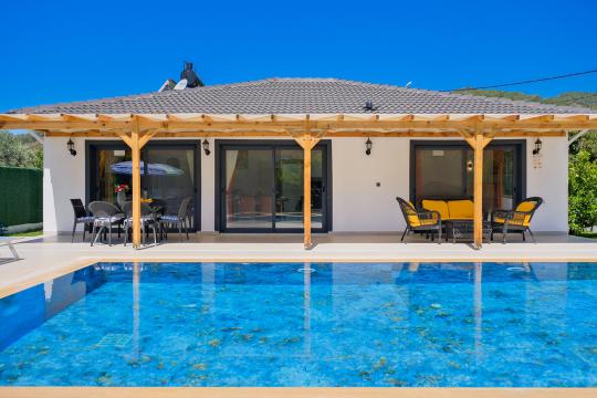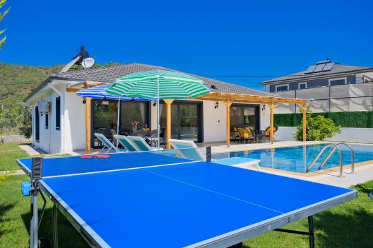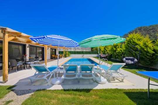 Fethiye Yanıklar mevkiinde konumlanmış olan Villa Fuego 1, yemyeşil bir bahçeye ve özel yüzme havuzuna sahiptir. Havuz terasında zaman geçirebileceğiniz bahçe yemek masası, şezlonglar ve barbeküsü sayesinde ailenizle beraber eğlenceli bir tatil geçirebilirsiniz.