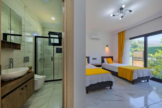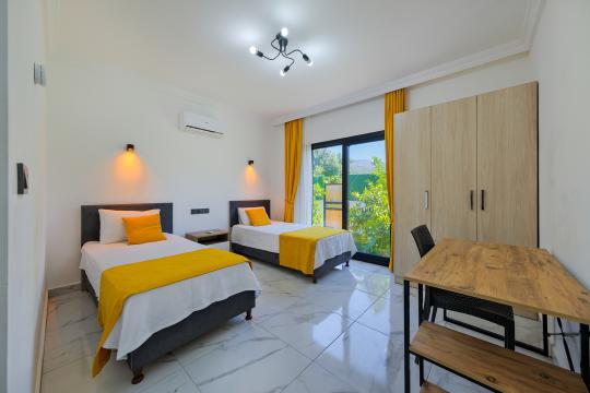 1. Yatak Odası : Oda içerisinde 2 adet tek kişilik yatak, komodin ve klima bulunmaktadır.