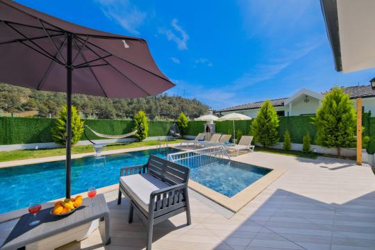 Fethiye/Yanıklar mevkiinde yer alan 2 yatak odasıyla 4 kişi konaklama kapasitesine sahiptir. Yeşillikli havuz ve bahçesinde aileniz ile birlikte keyifli dakikalar geçirebilirsiniz. Çekirdek aile ve balayı çiftleri için oldukça uygun seçenekler arasında bulunan villamız doğa içerisinde sessiz, sakin bir konumdadır. Yoğun şehir hayatının karmaşasından uzakta aileniz ile birlikte huzurlu bir villa tatili deneyimleyebilirsiniz.