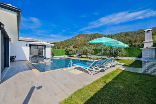 Fethiye/Yanıklar mevkiinde yer alan 2 yatak odasıyla 4 kişi konaklama kapasitesine sahiptir. Yeşillikli havuz ve bahçesinde aileniz ile birlikte keyifli dakikalar geçirebilirsiniz. Çekirdek aile ve balayı çiftleri için oldukça uygun seçenekler arasında bulunan villamız doğa içerisinde sessiz, sakin bir konumdadır. Yoğun şehir hayatının karmaşasından uzakta aileniz ile birlikte huzurlu bir villa tatili deneyimleyebilirsiniz.