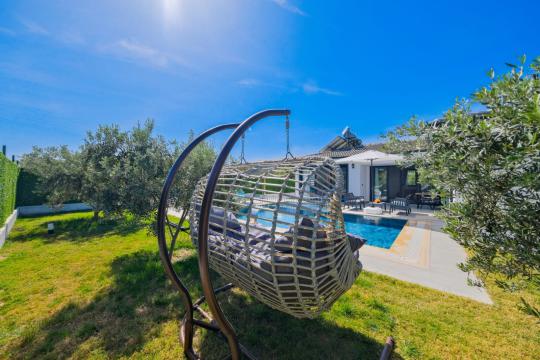 Havuz : Özel bahçe içerisinde ebatları; 8 x 4 metre ve derinliği 1.45 metre olmak üzere özel korunaklı yüzme havuzu bulunur. Ayrıca çocuk havuzu mevcut olup , ebatları : 3 m x 2 m derinlik; 35 cm’dir.