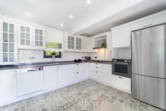 Mutfak : Modern Amerikan mutfak içerisinde buzdoplabı, bulaşık makinesi, tost makinesi, fırın, kahve makinesi, filtre kahve makinesi, çaycı, mikrodalga fırın, 4’lü ocak seti ve mutfak araç gereçleri (tabak&bardaklar, tenvere&tavalar vb.) yer almaktadır.