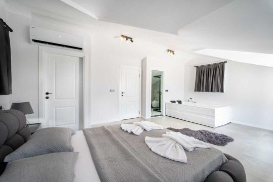 1. Yatak Odası : Oda içerisinde 1 adet çift kişilik yatak, komodin, klima, jakuzi ve banyo/WC bulunmaktadır.