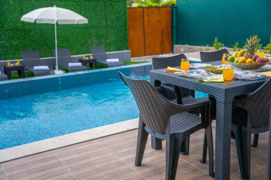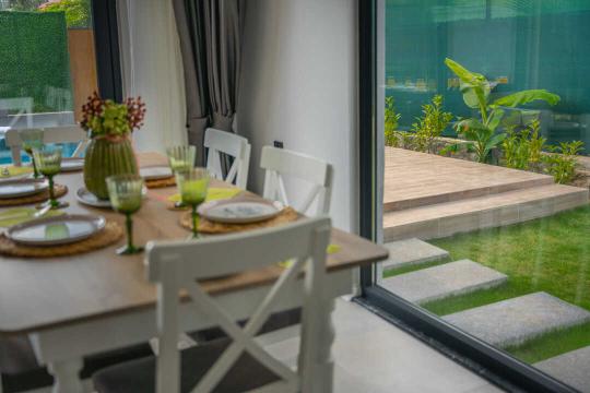 Özel bahçe : Özel bahçesinde özel havuzu bulunmaktadır. Ayrıca bahçede yemek masası & sandalyeleri ve barbekü/mangal bulunmaktadır.