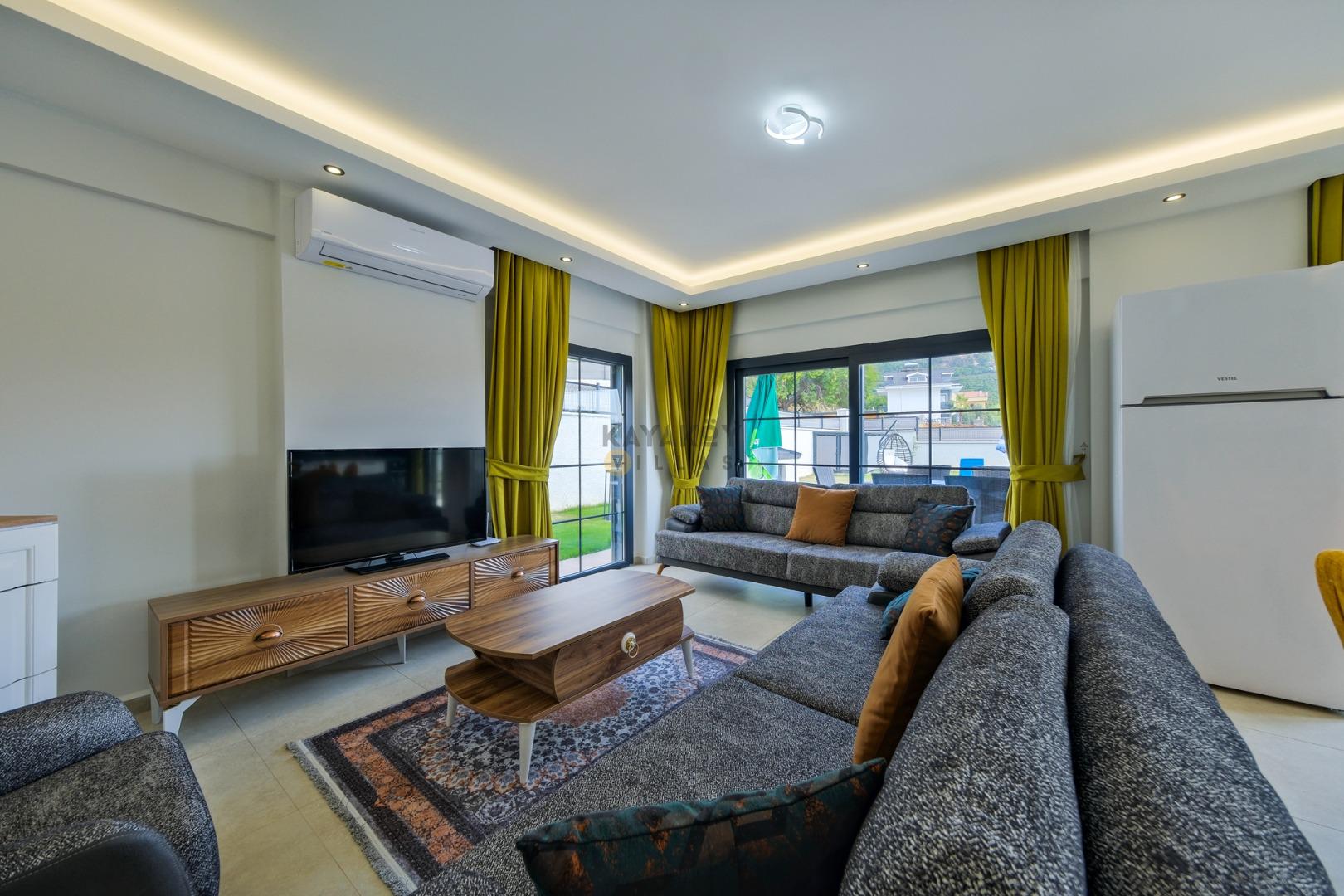Salon : Oturma grubu ,klima ,LCD TV, uydu alıcısı, kablosuz internet,yemek masası ve sandalyeler yer almaktadır.